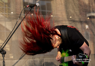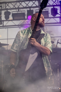 Znacznie więcej atmosferyczności, ciemności i przede wszystkim przestrzeni niezbędne było podczas koncertu Ne Obliviscaris, których umieszczenie na deskach Desert Stage było jedną wielką pomyłką. Choć koncert brzmiał naprawdę dobrze i selektywnie, co jest oczywiście najważniejsze, brakło tu klimatu - sześciu muzyków nie dość, że ledwo zmieściło się na scenie i choć roznosiła ich energia, nie bardzo miało jak skakać, to publiczność ledwo zmieściła się pod sceną. Przy okazji też fotografowanie stanowiło tu nie lada wyzwanie - fosa była tak wąska, że przeciśniecie się między głośnikami a barierkami wymagało nie tylko nieustannej uwagi i gotowości na posiadanie posiniaczonych od barierkowych prętów nóg, lecz także zmusiło do systemu rotacyjnego i wpuszczania po kolei na chwilę po trzech fotografów, w wyniku czego możliwość wykonania dobrych zdjęć drastycznie spadała. Sprawy nie ułatwiali też muzycy non stop wskakujący na głośniki i wychodzący ku publiczności, co oczywiście budowało atmosferę i w innych okolicznościach byłoby jak najbardziej wskazane. Mimo tych niedogodności był to jednak najlepszy pod względem muzycznym koncert tego dnia. Szczególnie urzekły mnie dialogi cięższych i lżejszych wokali oraz brzmienie skrzypiec, które dodawało mrocznej, chwilami bardzo progresywnej i technicznej muzyce dodatkowego wymiaru. Nie brakowało też melodyjności i naturalnej lekkości. Pięknie wypadły kompozycje z nowej płyty "Exul". Z przyjemnością posłucham grupy ponownie, najchętniej w klubowych okolicznościach.